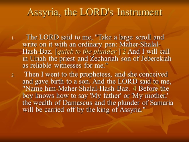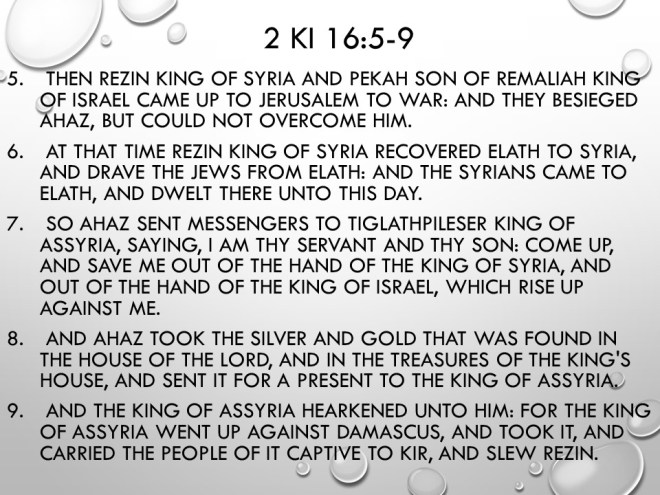 Isaiah 7. “Behold, a virgin shall conceive, and bear a son, and shall call his name Immanuel.” After that promise God spoke of a coming disaster.