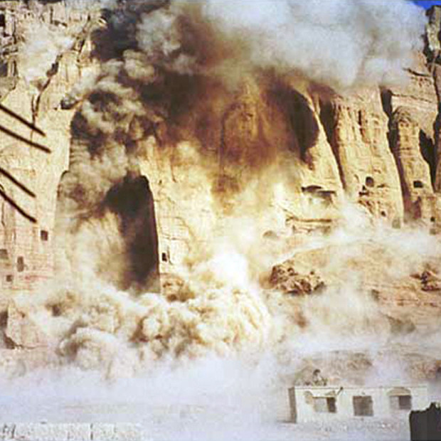 Screen grab from CNN video showing the giant Buddhas of Bamyian being destroyed by the Taliban on March 12, 2001.