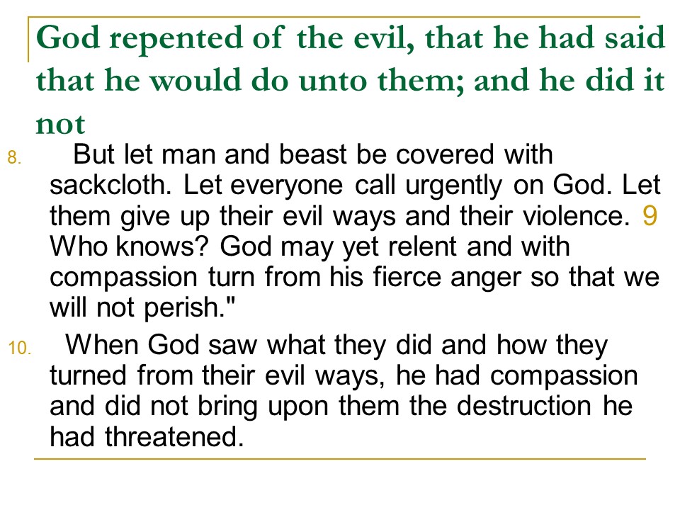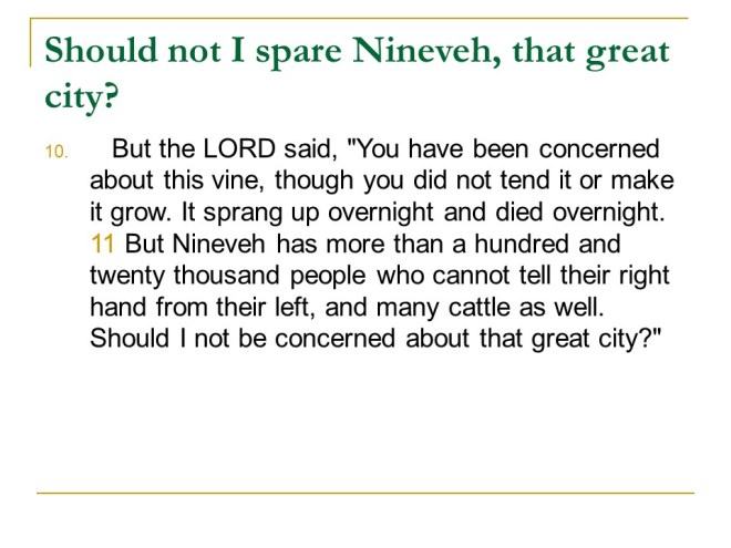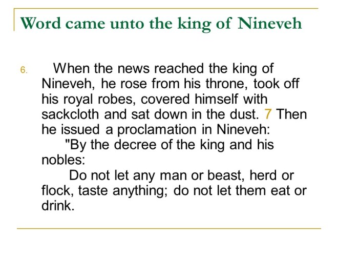 So God has compassion on children and animals. The Ninevehites repented after the sign of total eclipse, and then Jonah came after God had made the people receptive.