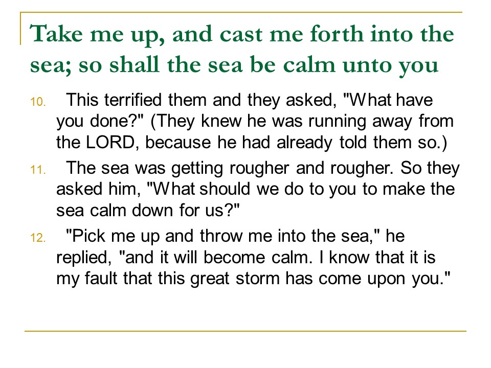 Jonah offered himself willingly, and in so doing became a type of Christ