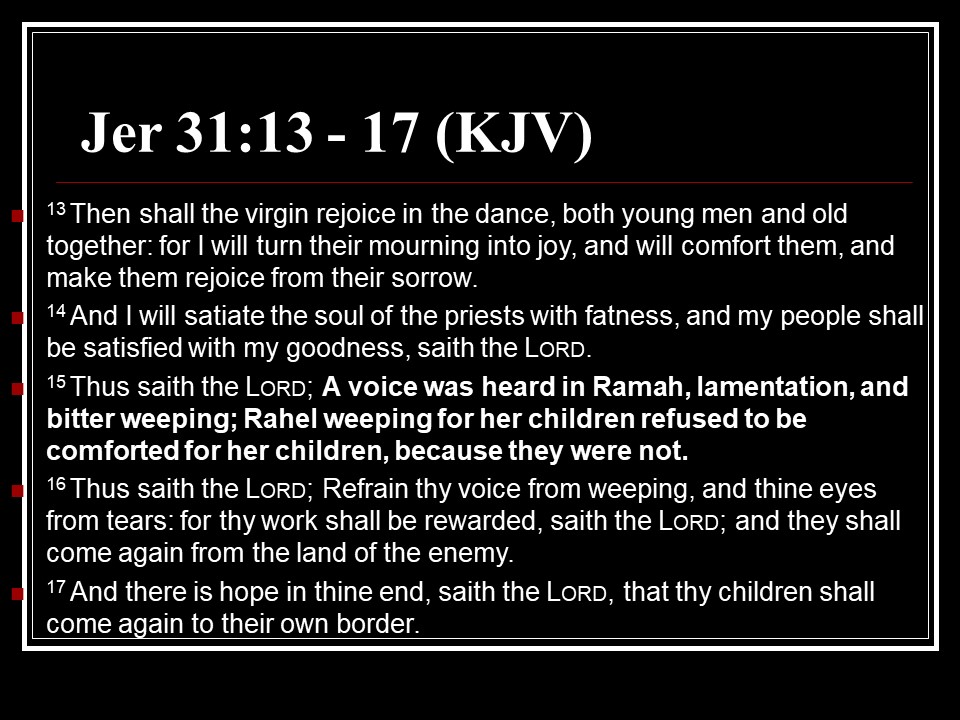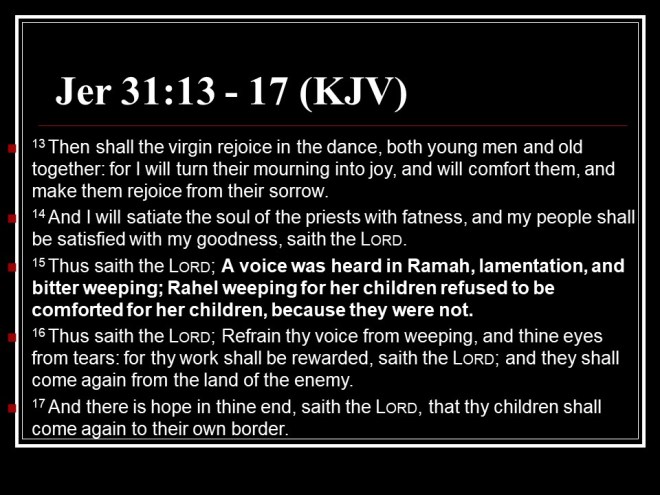 This passage is particularly interesting, with verse 15 put in the middle of a passage full of the most wonderful promises for Israel, ending with “a woman shall encompass a man.”
