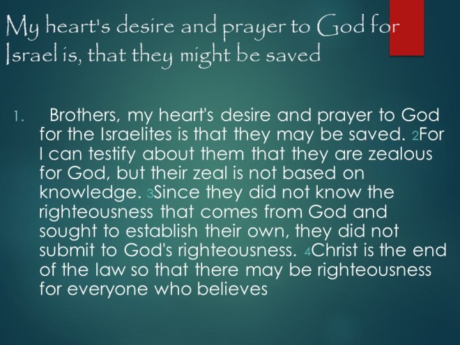 Romans 10. Paul claimed that Israel too needs the Gospel, “ if thou shalt confess with thy mouth the Lord Jesus, and shalt believe in thine heart that God hath raised him from the dead, thou shalt be saved.” It is true in the Gospel, that “there is no difference between the Jew and the Greek,” but Israel rejected the Gospel.