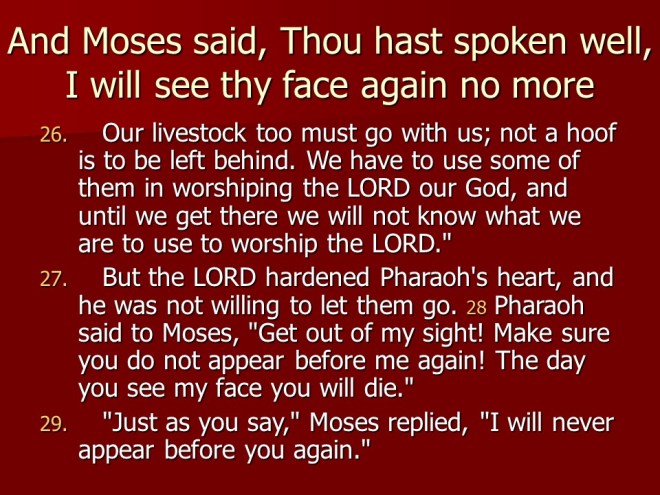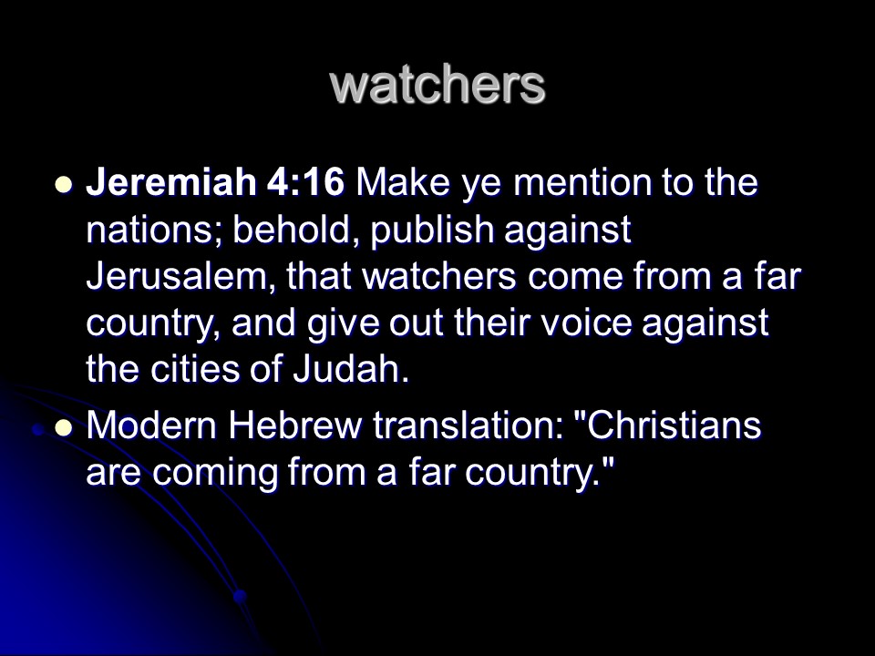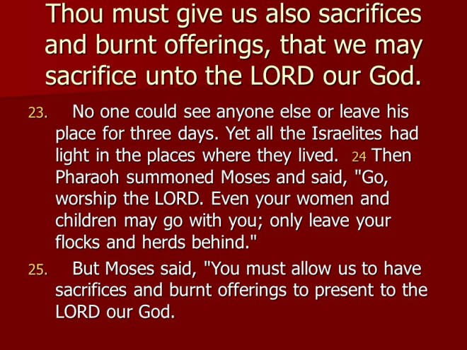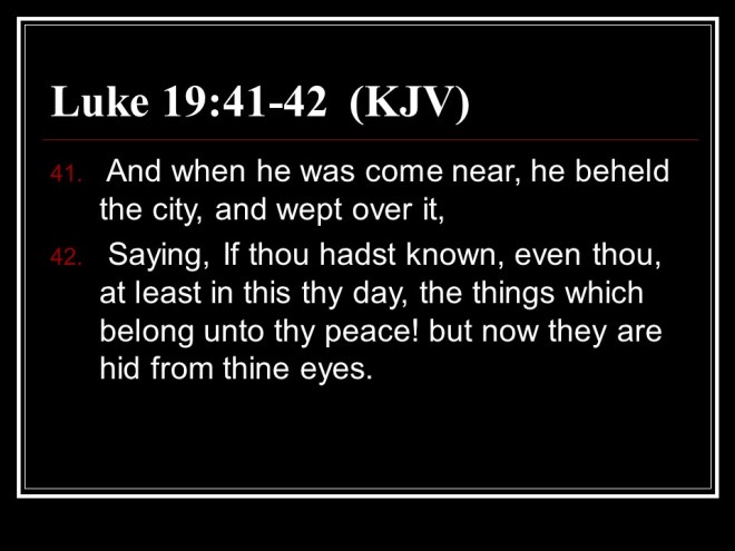 With the Muslim,also claiming Al-Qudz (Jerusalem) as their Holy City. Now it is getting more complicated. The Oslo accords tried to establish a two state solution, Both Istael and Palestine should be recognized as states. Now Yasser Arafat entered and tried to establish a diplomatic solution. In an interview he grudingly accepted Israel as a state, but when the interviewer tried to make him repeat his acceptance in Arabic he hemmed and hoed and could never get himself to do so. Why was that? It is because their Holy Quran states that Israel will never again rise to be a nation. If Israel becomes a nation again that would make Muhammad a non Prophet. There are other diffences between the Bible and Quran The Bible lists ten plagues of Egypt, The Quran has only nine, the death of the firstborn is missing. This plague lead to the passover, one of the most important commemorations in the Jewish Calendar. It is also the day when Jesus was crucified, very important for Christians. The Quran teaches that Jesus was never crucified, it only seemed so to the Jews; instead Jesus was directly translated to heaven. A holy God would never punish his son that way!