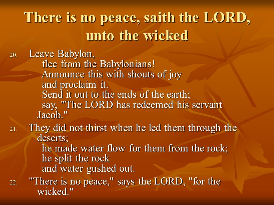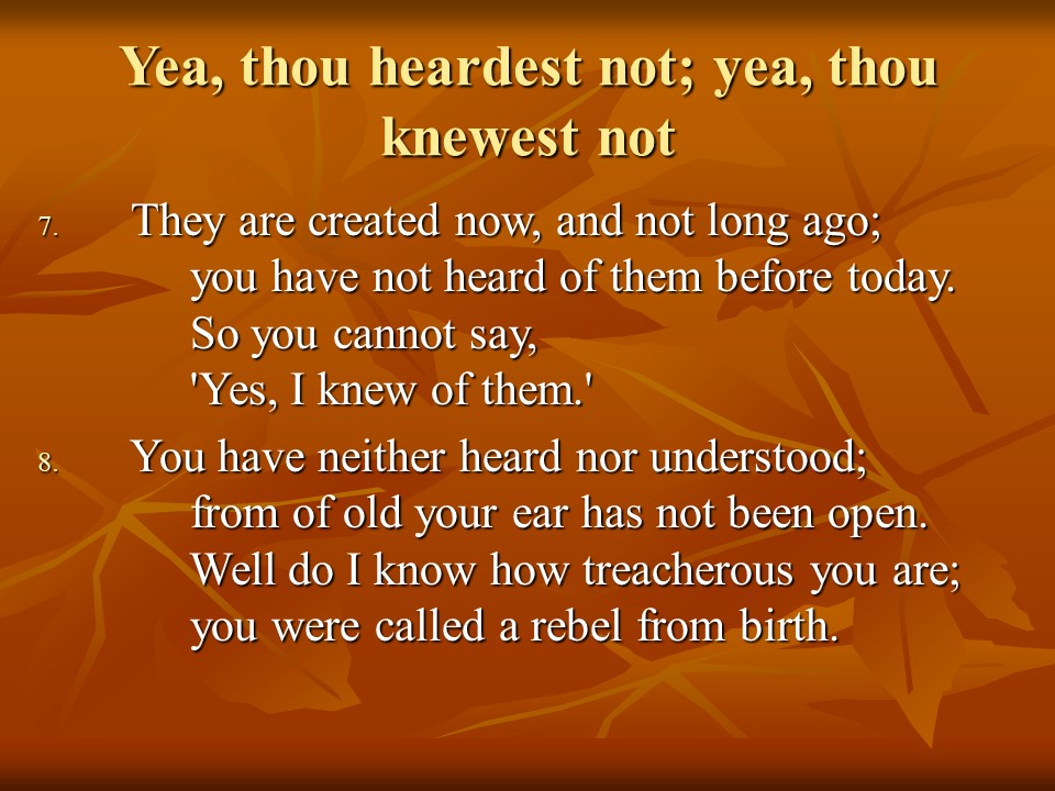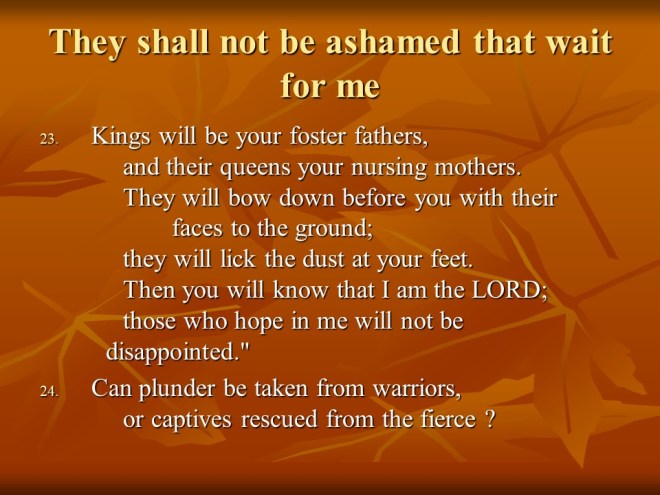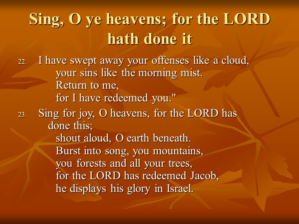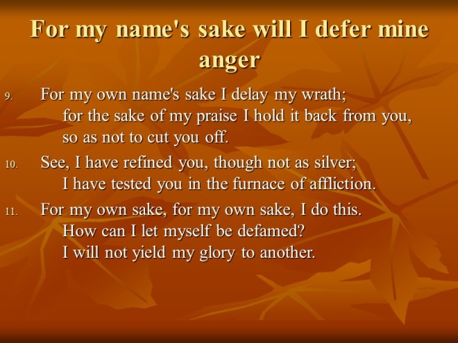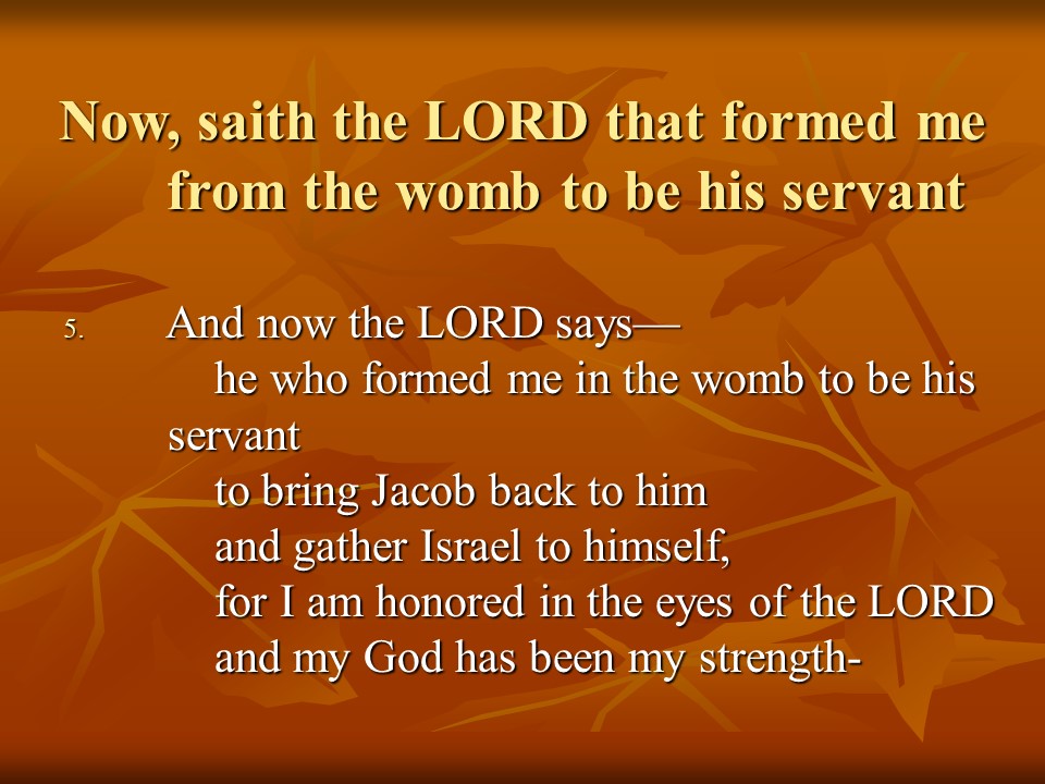 The other big prophesy is found in Chapter 53, the Suffering servant. It begins in chapter 12, verse 13. The passage on the suffering Servant is never read in Jewish Synagogues, not in the triennial reading, nor at Holy days. Up to now the LORD, through the prophet Isaiah has referred to his servant Israel, and in one case, in Isaiah 45:1 Cyrus: Thus saith the Lord to his anointed, to Cyrus, and 45:4 For Jacob my servant’s sake, and Israel mine elect, I have even called thee by thy name: I have surnamed thee, though thou hast not known me.