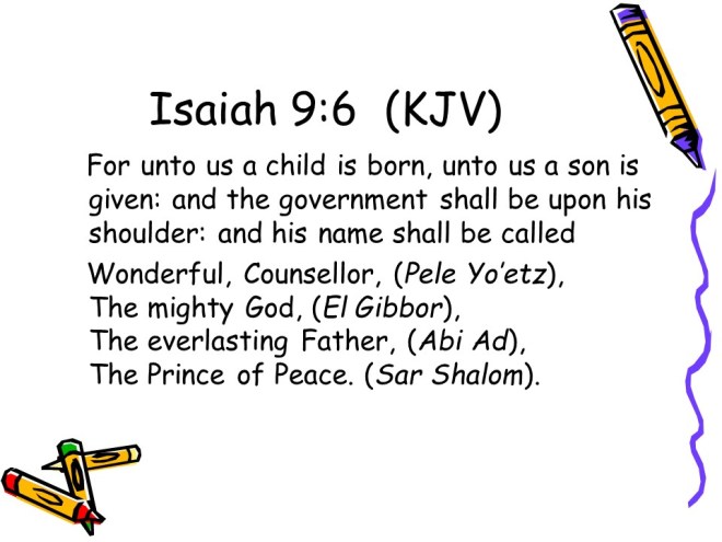 It also shows the unity of God, Father, Prince of Peace, Wonderful Counselor, three aspects of God, three in one, the triune God, the Trinity.