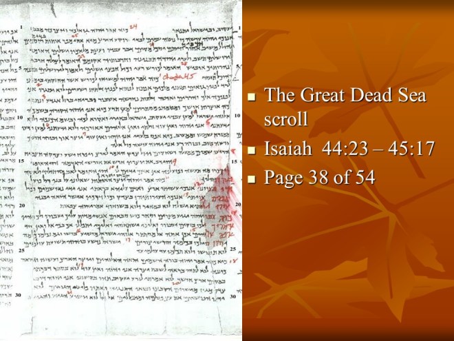 Here God refers to the other anointed, the Messiah. No other chapter in the Bible is quoted more in the New Testament. because of this it was more or less mathematically proven that Isaiah was edited and Isaiah 53 was added about 400 A.D. as well as a number of other prophecies. Then in 1947 they found the Dead Sea Scrolls and more than a hundred years of source critical Bible analysis had to be abandoned. The Dead Sea Scrolls had been copied from even older copies more than 140 years B.C. Let God’s word speak for itself.