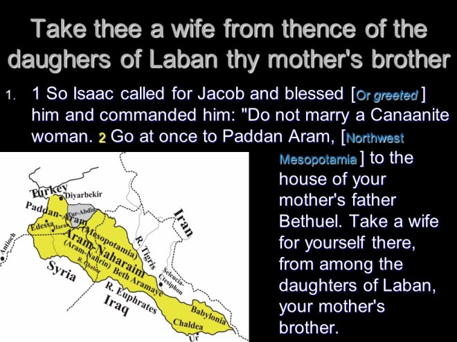 Esau’s wives so far were Hittites. That explains why Rebekah in chapter 27:46 “I’m disgusted with living because of these Hittite women. If Jacob takes a wife from among the women of this land, from Hittite women like these, my life will not be worth living.” It was not prejudice, it was the friction between mother-in-law and daughters-in-law.