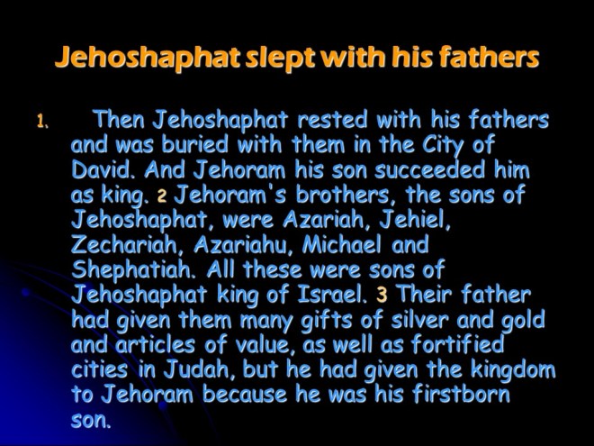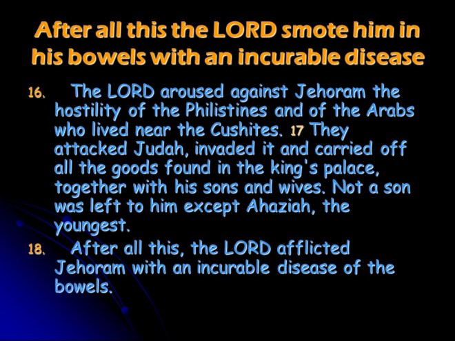 2 Chronicles 21. The reign of Jehoram in Judah.