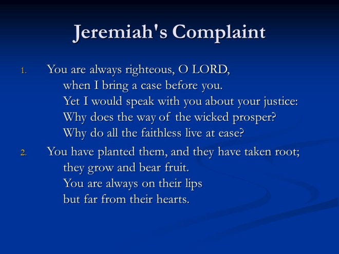 Jeremiah 12. Jeremiah poured out his complaint. The LORD gave His answer.