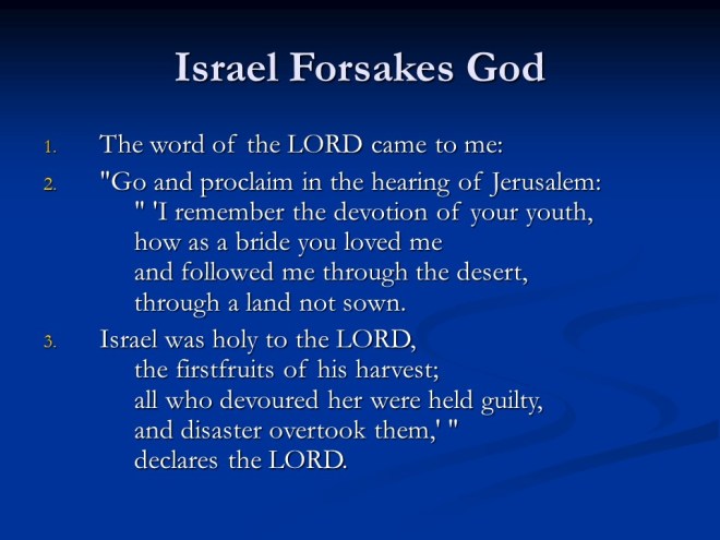 Jeremiah 2. Israel had forsaken the LORD, and God presented His case against Israel.