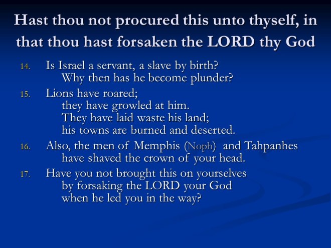 Jeremiah 1, the call of Jeremiah. The key word in Jeremiah’s call is “before“. Here God confirmed His call with two visions, the branch of an almond tree and a boiling pot tilting away from the north. These were promises of the fulfillment of God’s word and of an impending disaster. God finally assured Jeremiah He will be with him, so don’t worry.