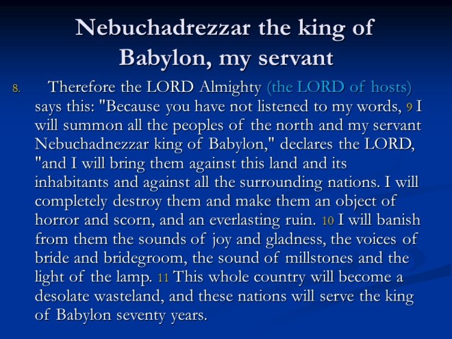 Jeremiah 25. Here it comes; Jeremiah prophesies seventy years of captivity and judgment on the nations.