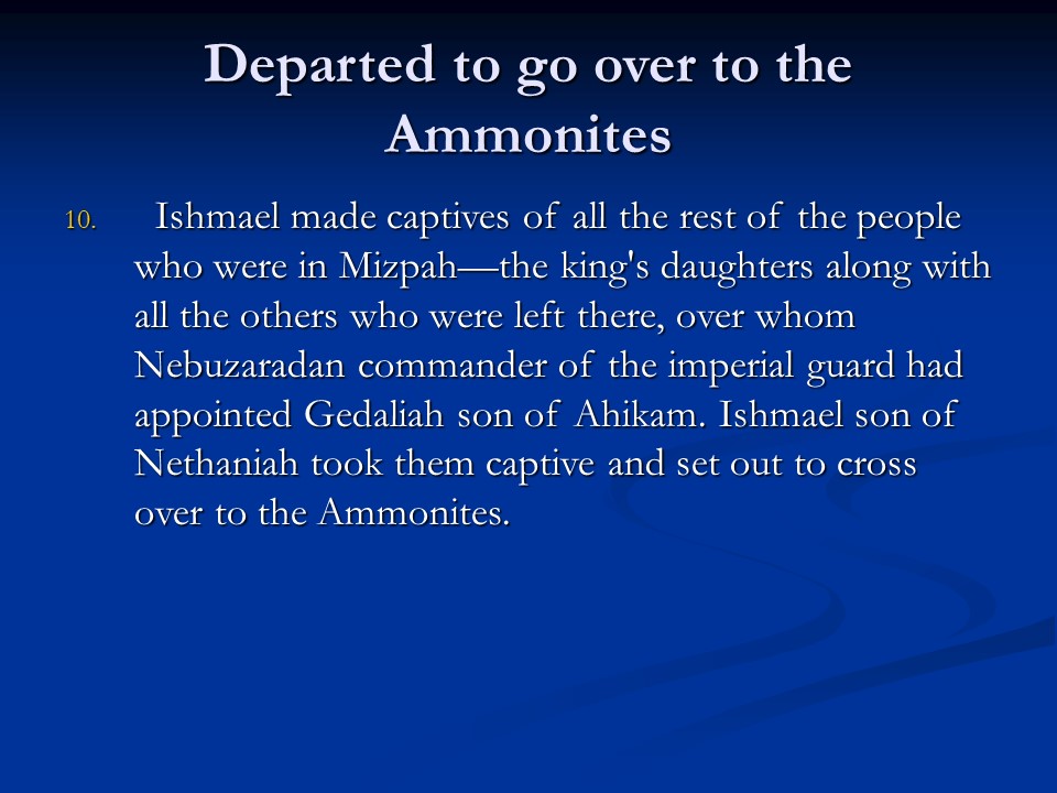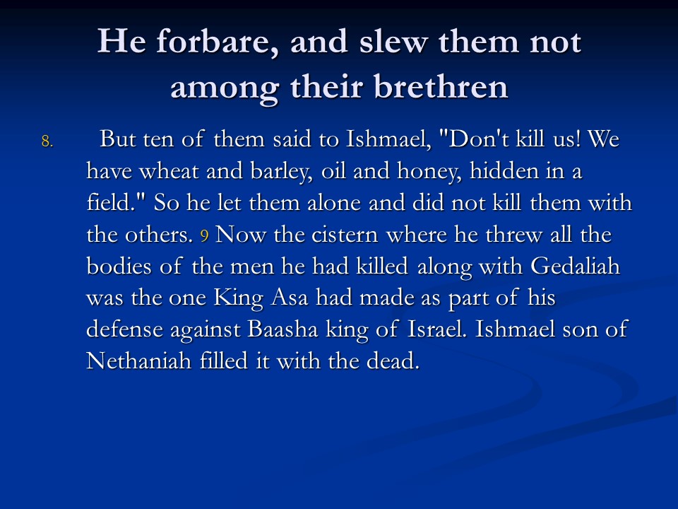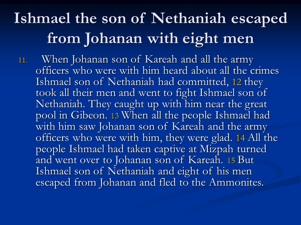 Jeremiah 41 is a historical chapter recording the insurrection against Gedaliah and the beginning of a flight to Egypt.
