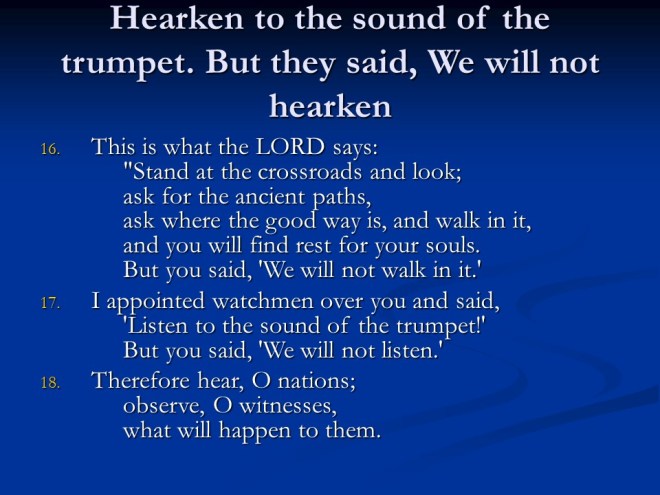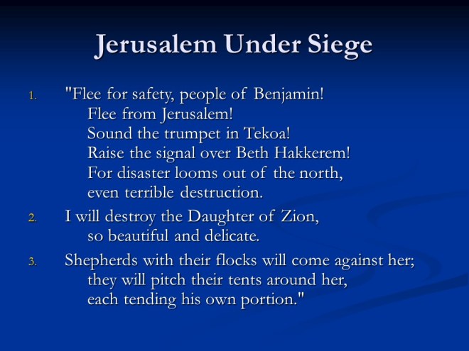 Jeremiah 6. Bad news. Jerusalem will be under siege.