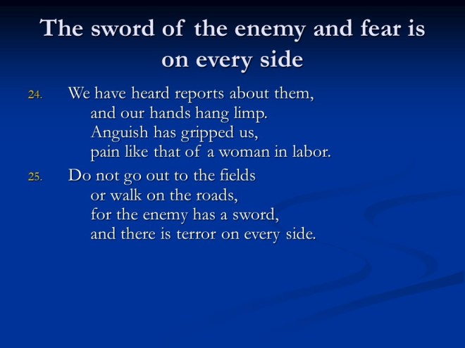 Jeremiah 6. Bad news: Jerusalem will be under siege.