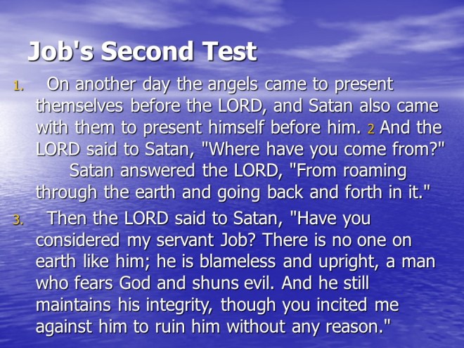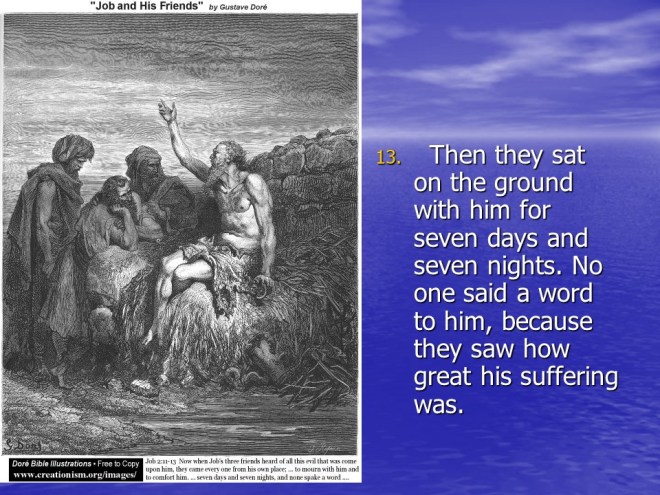 Job 2. Satan Attacked Job’s Health, and then Job was visited by three friends, keeping him company for a week without saying a word.