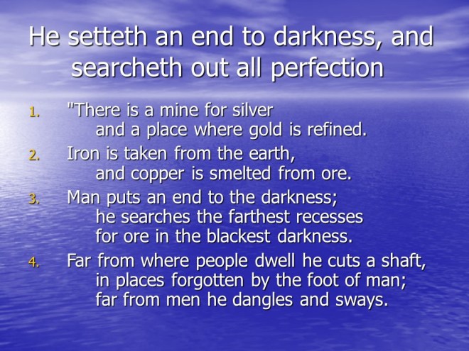 Job 28. Job continued with a discourse on wisdom.