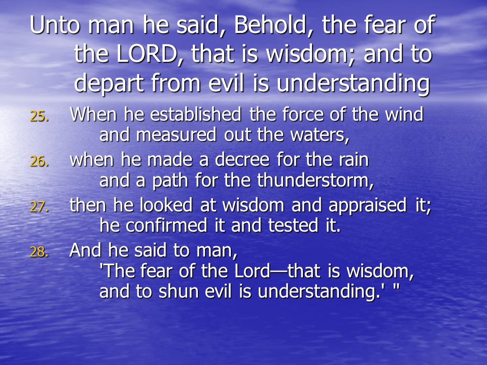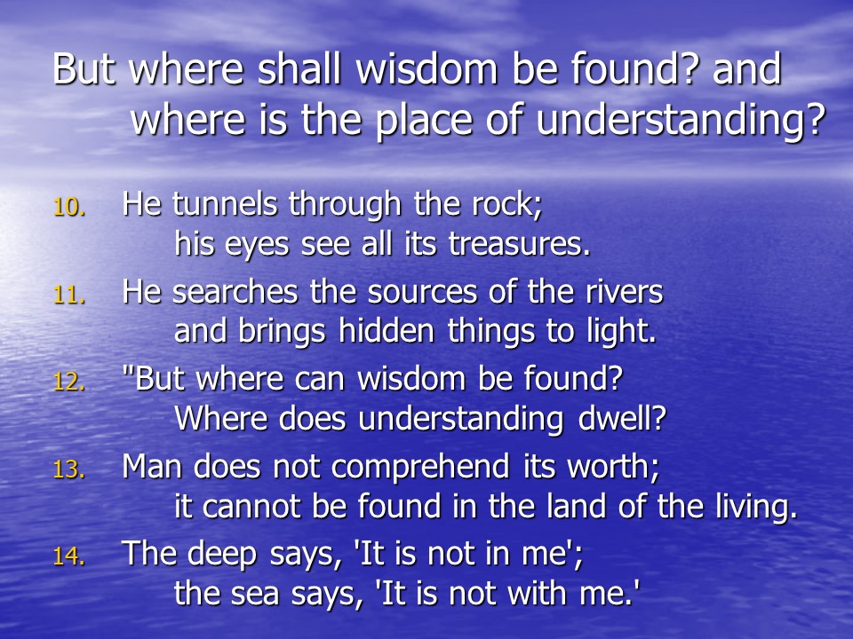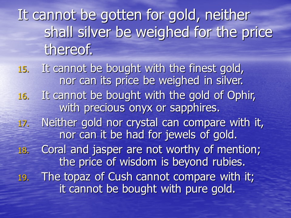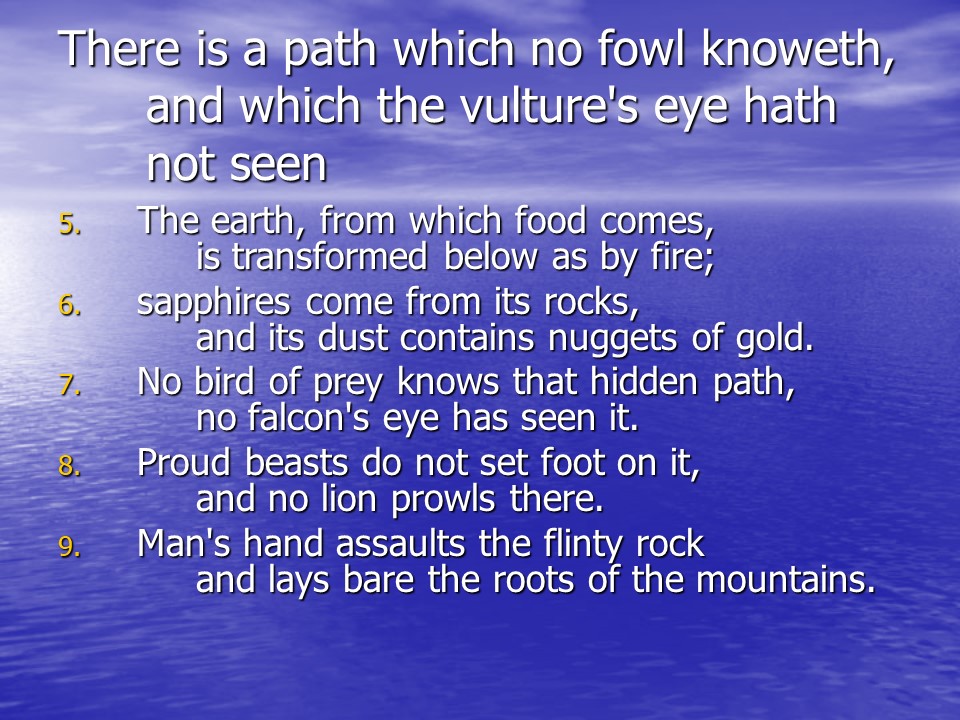 Job 28. Job continued with a discourse on wisdom.