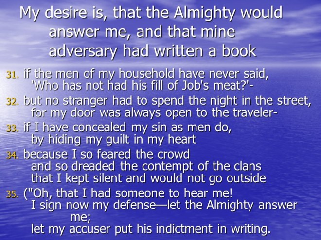 Job 31. Job ended his defense.