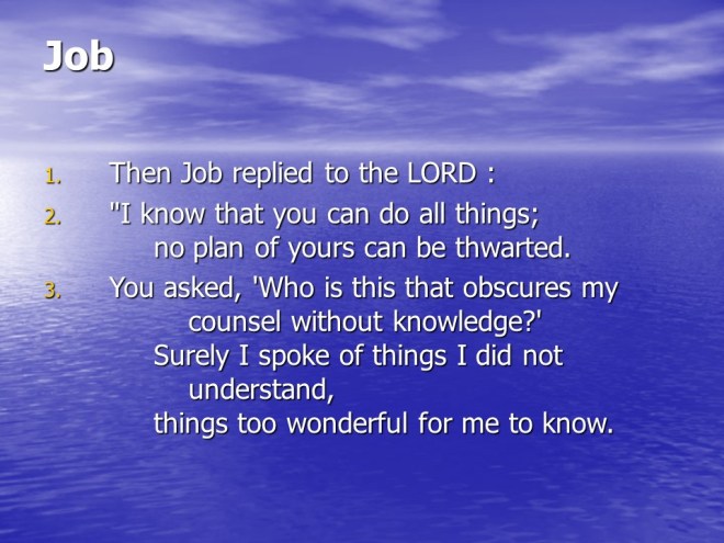 Job 42. Job repented, “I abhor myself, and repent in dust and ashes.” and God completely restored Job.