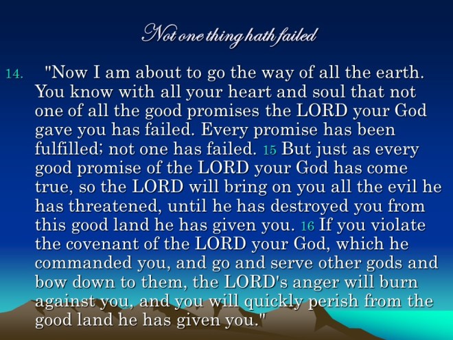 Joshua 24. The Covenant was renewed at Shechem, at which time Joshua retold their history thus far, followed by the death of Joshua, and also the death of Eleazar, Aaron’s son.