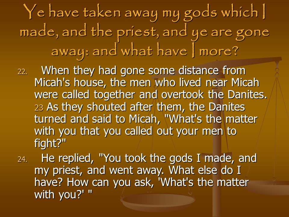 Judges 17 is short, contains only the telling of Micah’s Idolatry.