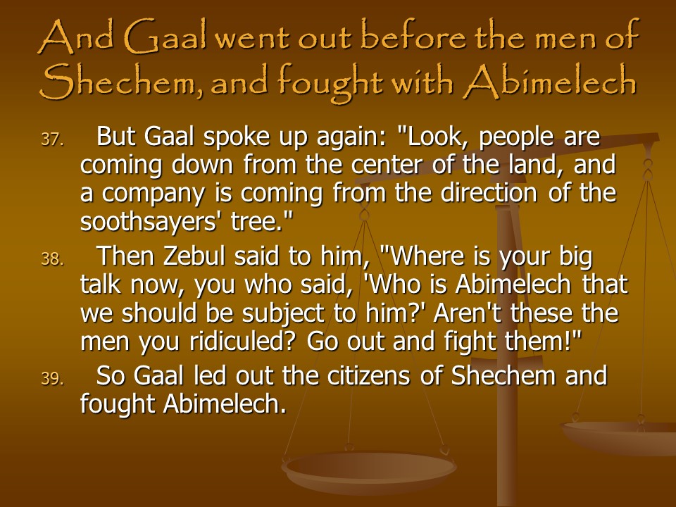 Judges 8. Gideon Defeated the Midianites, the story is getting complicated but read it anyway. After the great victory Gideon made an Ephod from the Ishmaelites’ golden earrings and this became a snare to them all. Finally Gideon died and immediately after that the Israelites fell back into idolatry, worshiping Baal.