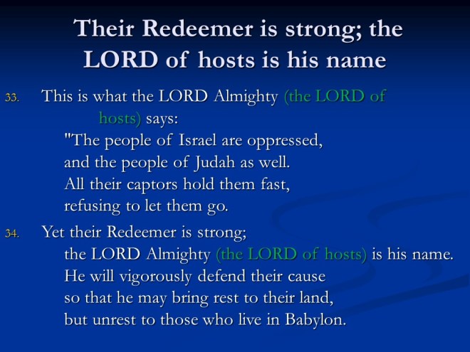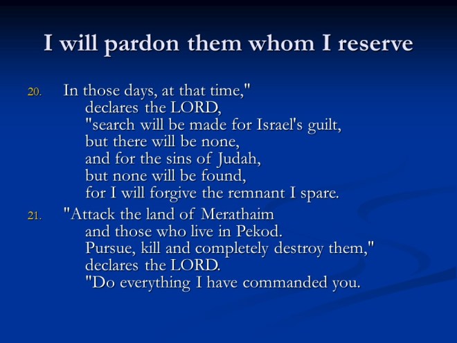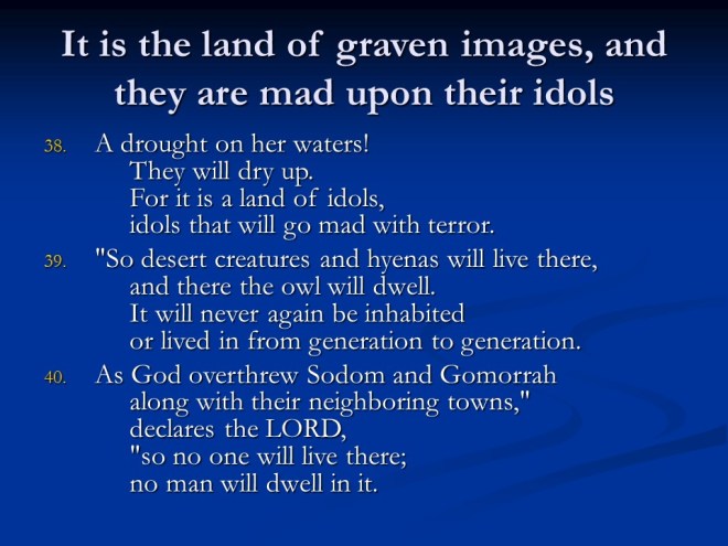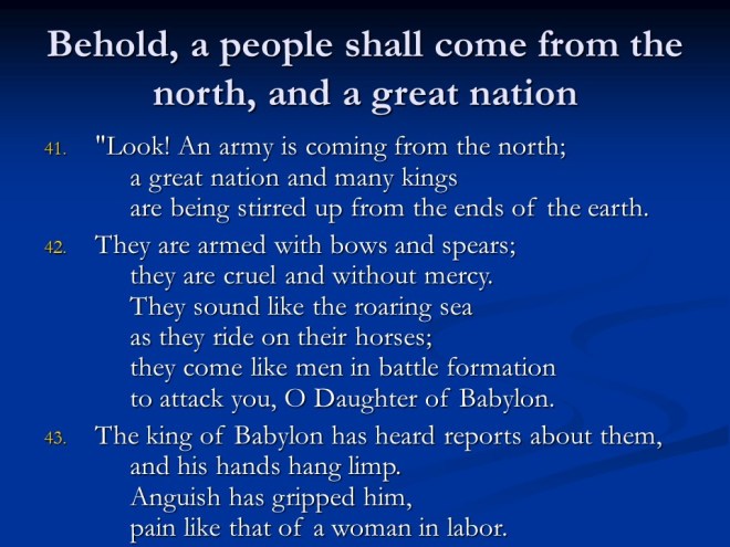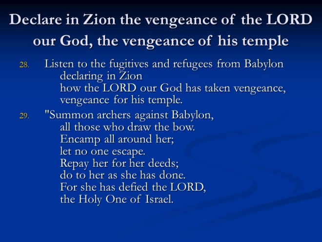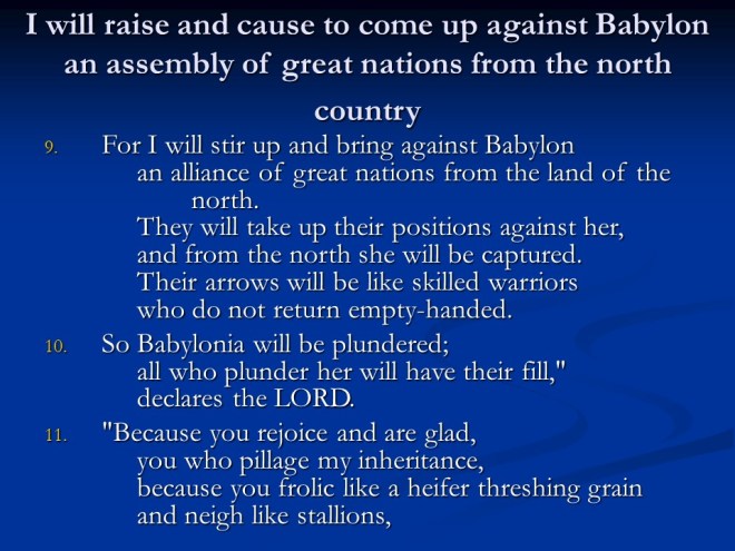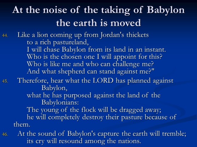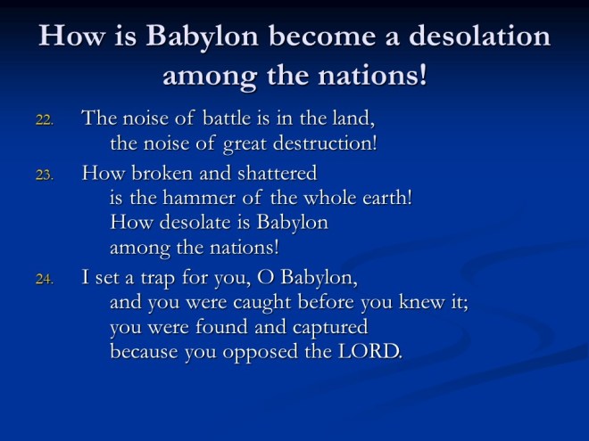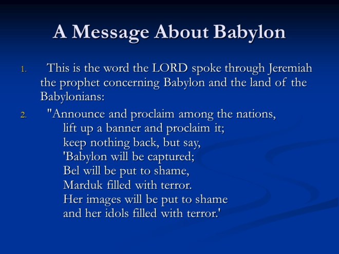 Jeremiah 50. The judgments continued, this time against Babylon and Babylonia.