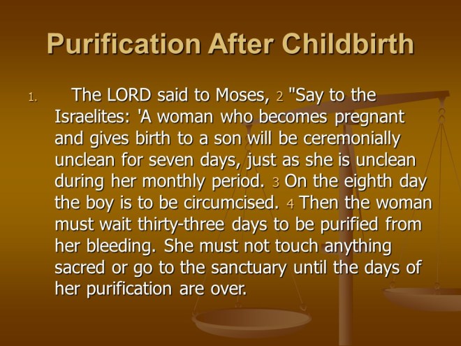 Leviticus 12 is a short chapter and deals with purification after childbirth.