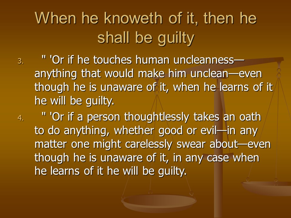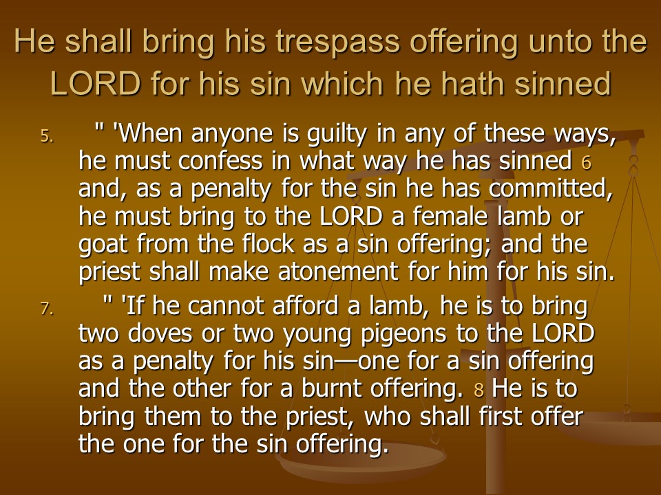 Leviticus 5 completes the description of the sin offering and continues with the guilt offering.