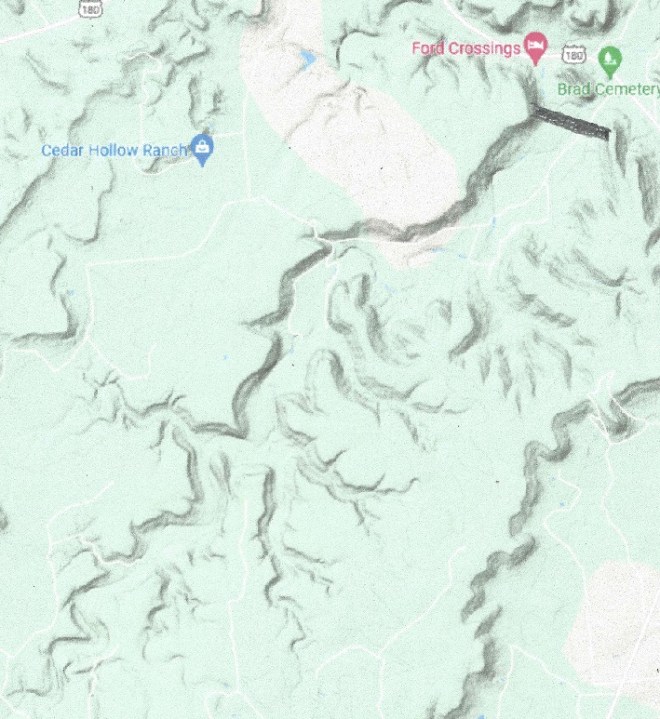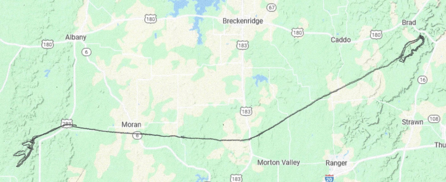 The Transcontinental Aqueduct, Leg 2: Aquilla lake to Brad reservoir (to be built), a distance of 100 miles.