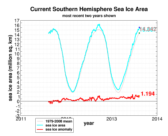 But it will get warmer at the poles. That will cause melting of the ice-caps? Not so fast. When temperature rises the atmosphere can hold more water vapor, so it will snow more at higher latitudes. While winter temperatures will be higher with more snowfall, this will lower the summer temperatures until the extra snow has melted. And that is what is happening in the Arctics