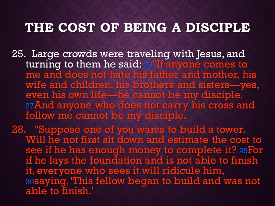Luke 14, a man with dropsy healed on Sabbath, the lowly Place, the Great Supper parable, cost of following Christ, worthless salt.
