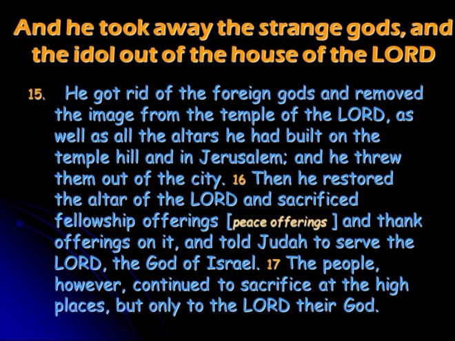 2 Chronicles 31 tells of the Reforms of Hezekiah. “He did it with all his heart, and prospered.”
