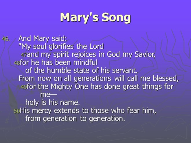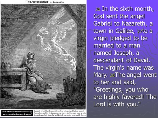 Luke 1, to Theophilus. The birth of John the Baptist foretold to Zacharias by an Angel, then the angel Gabriel makes an announcement announcement to Mary, Mary meets Elizabeth, Zacharias’ wife. Luke 1 also contains Mary’s song, Zacharias’ prophecy and the Birth of John the Baptist.