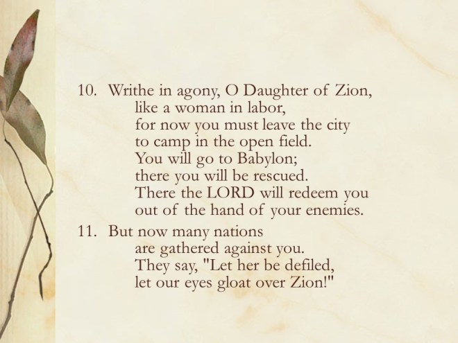 Micah 4 speaks of the LORD’s future reign in Zion and Zion’s triumph.