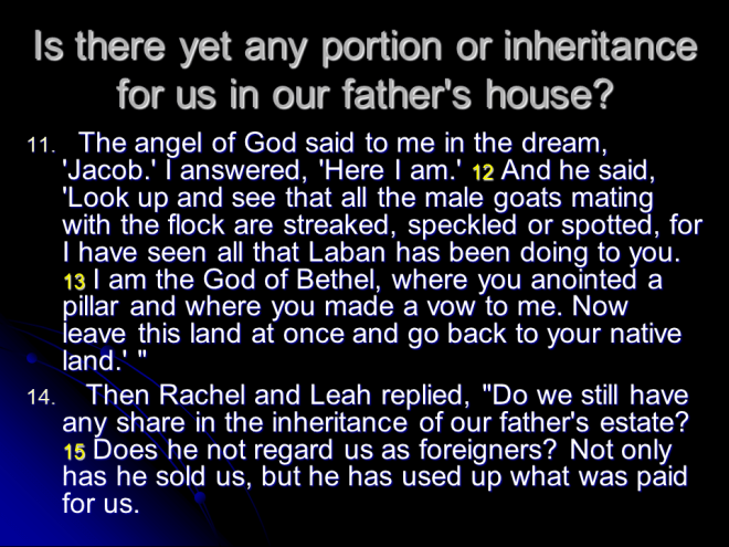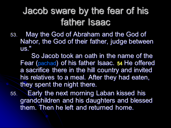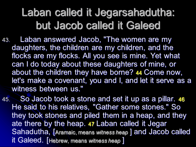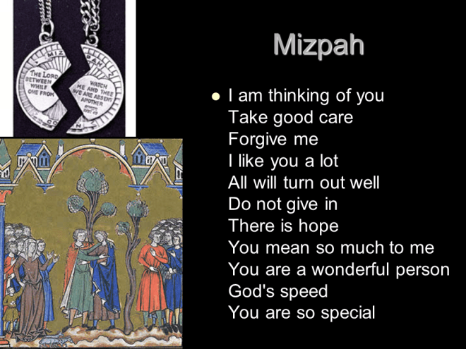 The sons of Laban were displeased with Jacob getting rich at their expense, so in Genesis 31 Jacob fled from Laban. However, as Jacob, wives and children all were set to depart, Rachel stole Laban’s idols. Laban found out the idols were missing, pursued Jacob and caught up with him. Laban looked for the idols, at no avail, Rachel had hid them under the saddle of her camel and sat on it claiming she had her period. Finally Laban gave in, said farewell to all and he and Joseph established the Mizpah.