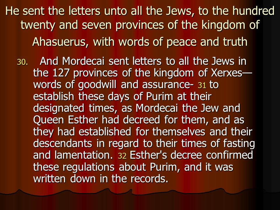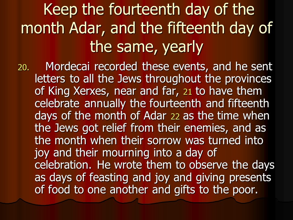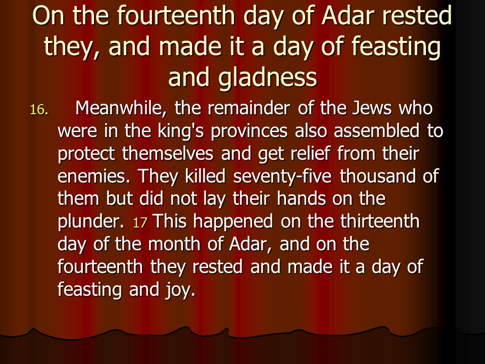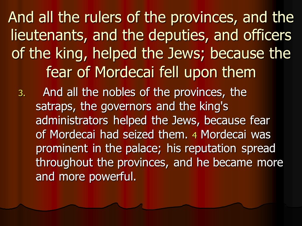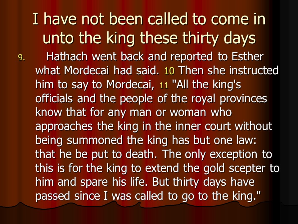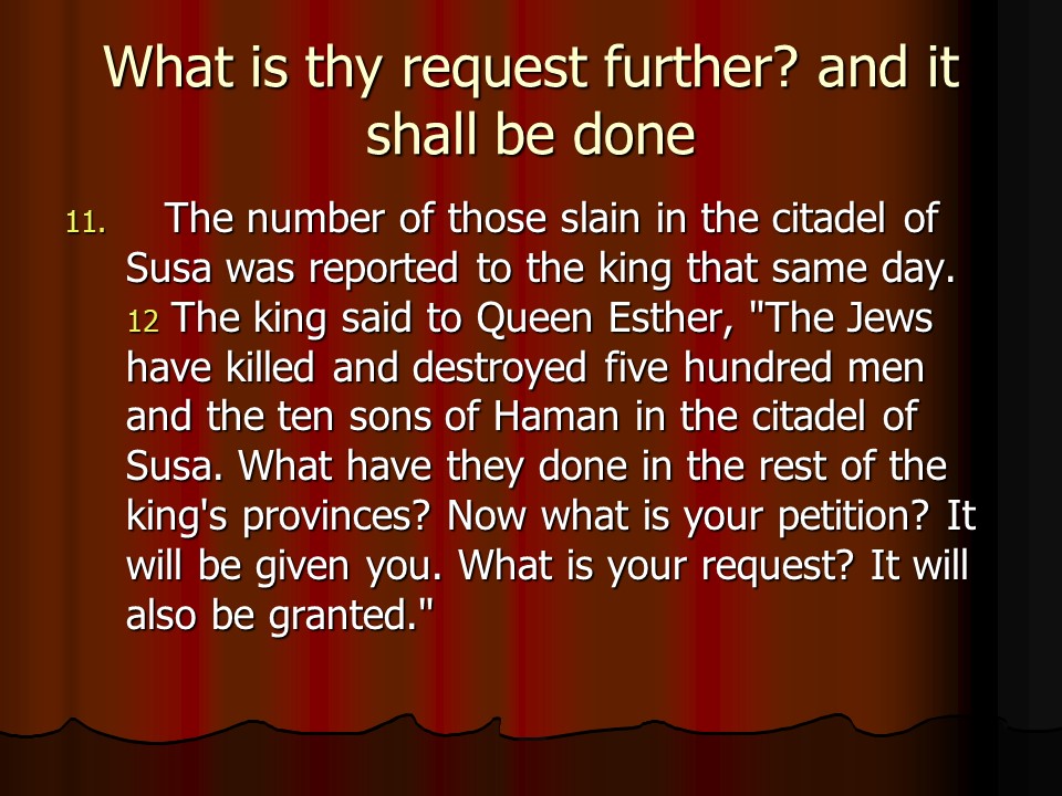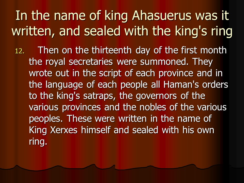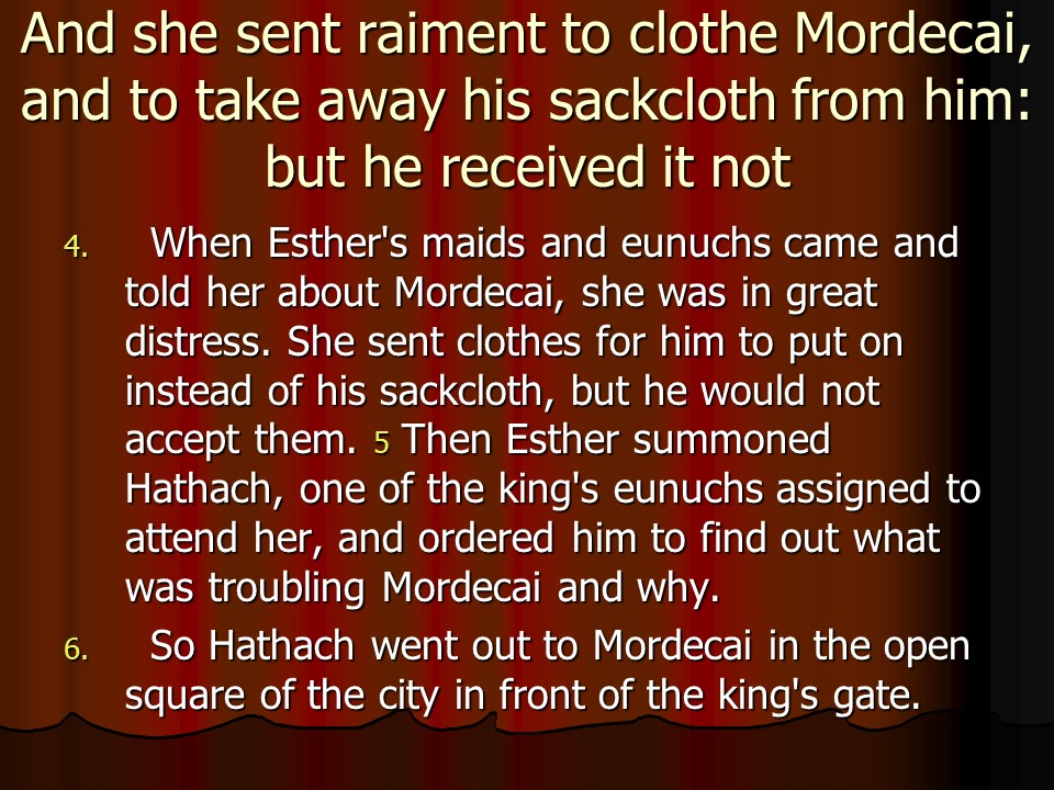 Esther 6. As it so happened, the king had a case of insomnia. To become drowsy he had the annals read to him, which told that Mordecai had averted a coup. During the banquet the king wanted to honor somebody, and rather than Haman, Mordecai was honored.