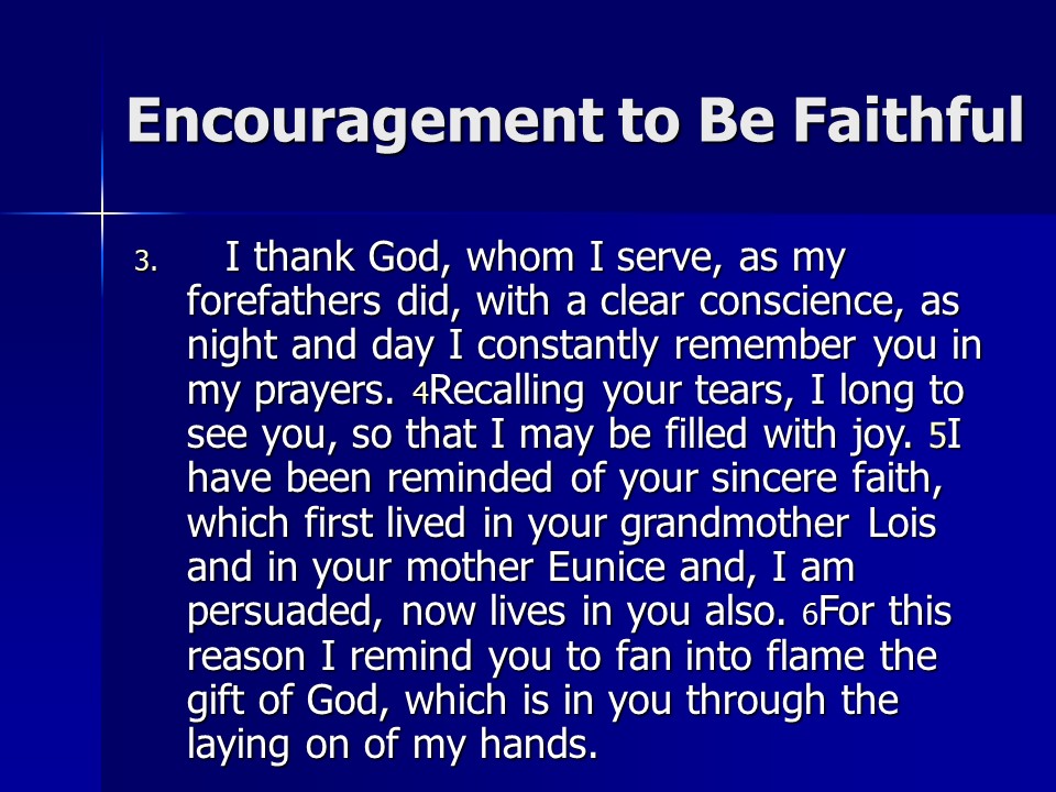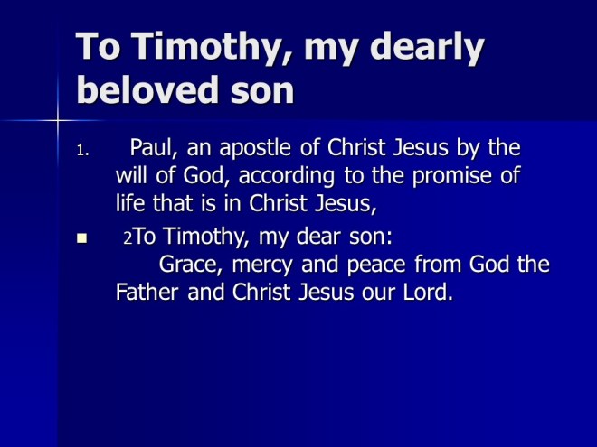 2 Timothy 1, Greeting, Timothy’s Faith, Mother Eunice, Grandmother Lois, Not Ashamed of the Gospel, Be Loyal to the Faith.