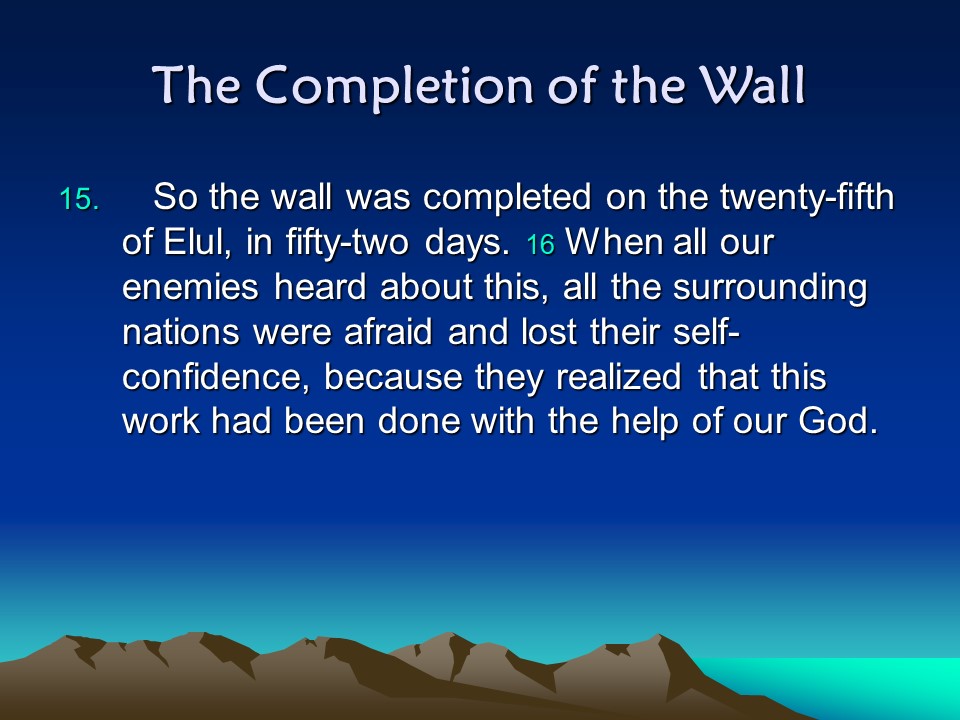 Nehemiah 4. Through strong opposition the building of the wall was defended.