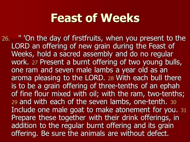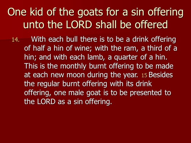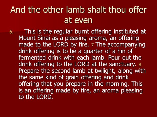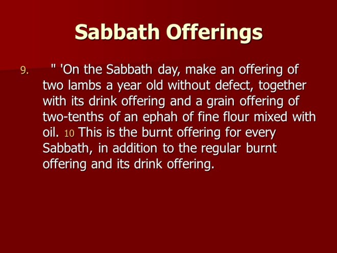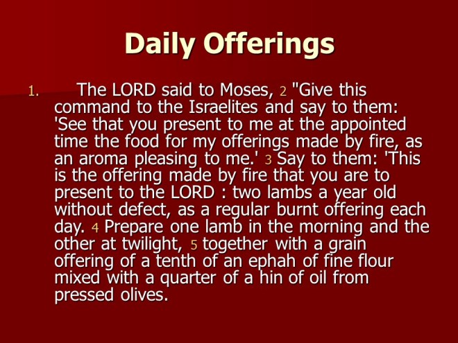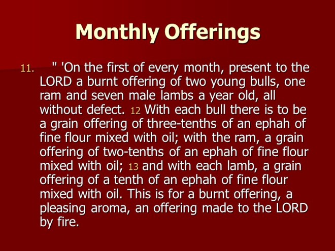Numbers 28 is all about offerings, the Daily Offerings, Sabbath Offerings, Monthly Offerings, Offerings at Passover and Offerings at the Feast of Weeks.