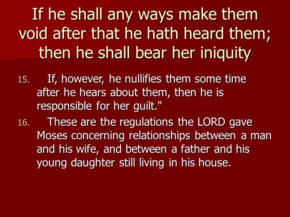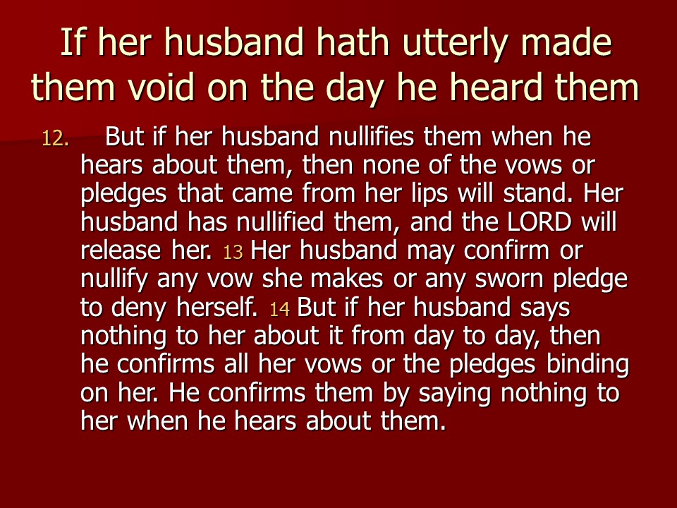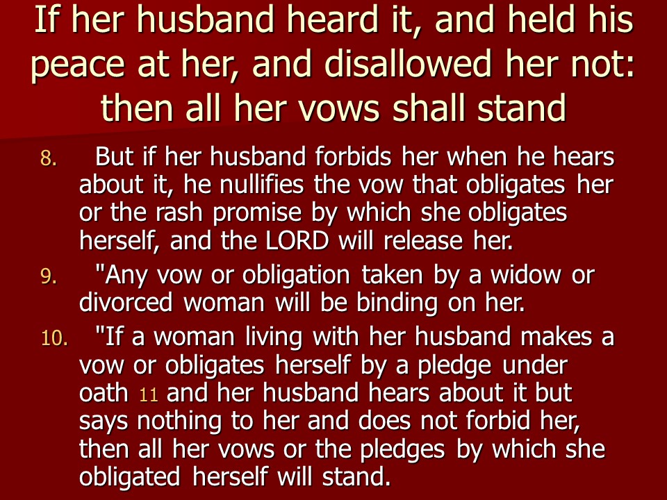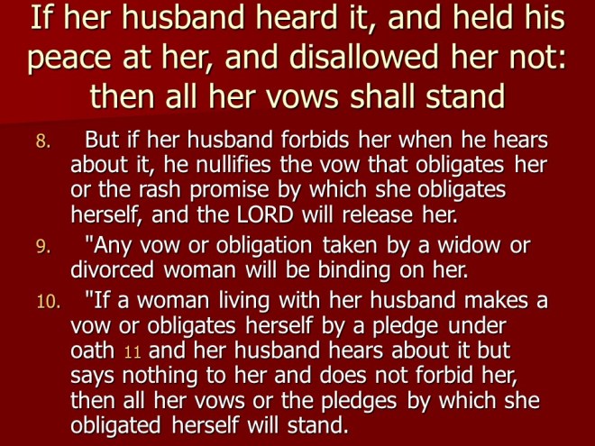 Numbers 30 is short, and it deals with what the Law says about vows.