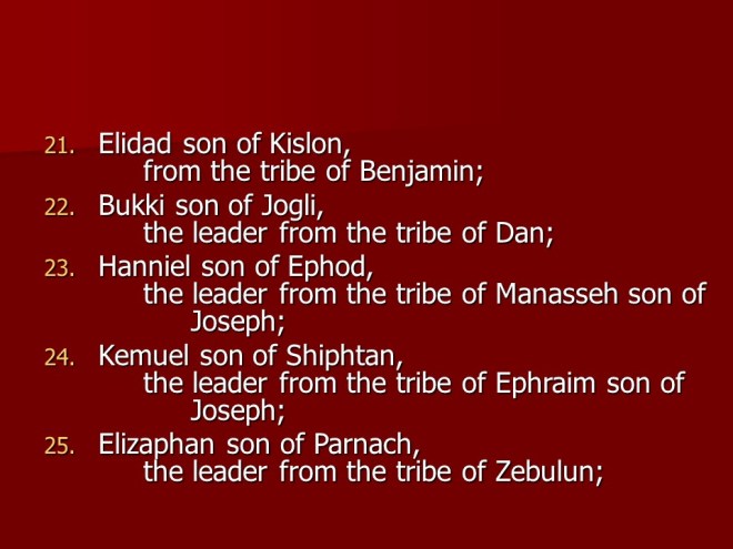Numbers 34, defines the Boundaries of Canaan and mentions all the leaders appointed to divide the land.