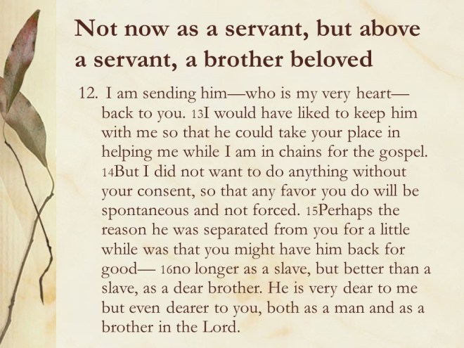 Paul’s letter to Philemon, slavery and redemption.