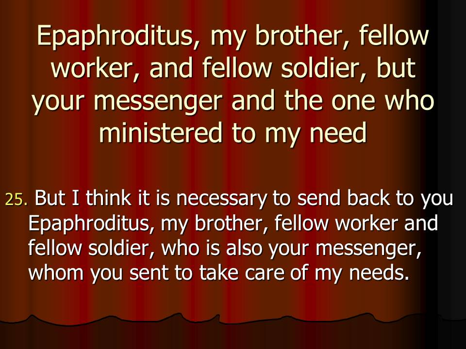 Philippians 2:12-29. The Apostle Paul urged the believers to work out their salvation with fear and trembling. Yes, salvation is past tense (for by grace have you been saved), present tense (work out your own salvation) and future tense (you will be saved). God is independent of time (He existed before time and space and created both). Paul ended the chapter talking about Timothy and Epaphroditus.