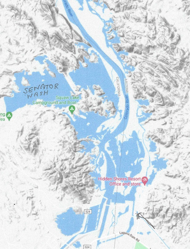 To the Martinez lake it can deliver up to 15,155 cfs, the design capacity of the All American canal. This will of course be nearly always far less, dependent on the need for water for irrigation, but we dimension the aqueduct to accommodate maximum flow. The Martinez lake is puny, and would easily be overwhelmed by surges in the water flow. To accommodate this, the Senator Wash Reservoir will have to be upgraded to be able to pump up or down at least twice as much water as is it’s present capacity. Lake Martinez is at about 180 feet elevation, and Senator Wash Reservoir is at a maximum elevation of 240 feet.