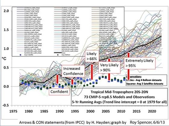 Not much has changed since this chart was first published. While the IPCC confidence in their climate models keep increasing, so does the difference between model prediction and actual temperature.