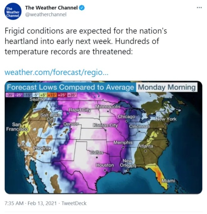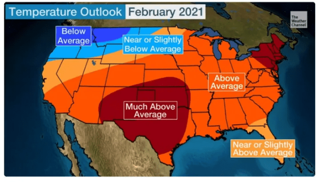 The long term weather forecast for February, issued January 21 by the weather channel looked like this: