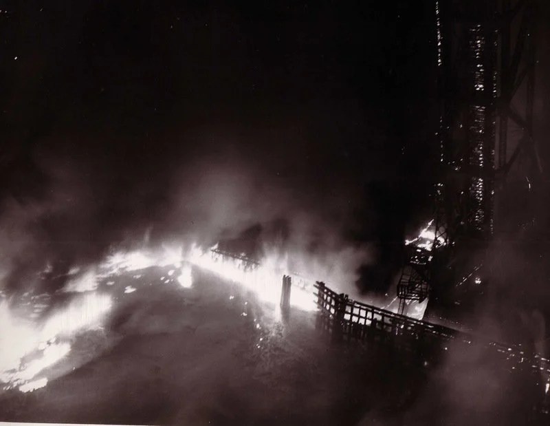 In 1868, 1883, 1887, 1912, 1922, 1936, 1941, 1948 and 1952 the Cuyahoga River in Cleveland, Ohio caught fire. Here is a picture of the 1948 fire.