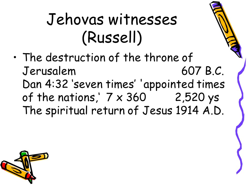 Next came Russell, founder of Jehova’s Witnesses. He proclaimed a spiritual return (since nobody can possibly physically rise from the dead)